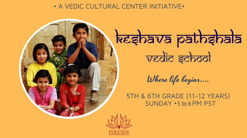 The Keshava Pathshala at the VCC Vedic School provides fun filled strategies that present Vedic Culture to 5th & 6th grade children (11-12 years). The children will be taught a bird's eye view of philosophy from the Bhagavad Gita and Srimad Bhagavatam in easy to understand language and picture presentations. Through the medium of music, drama, debates, quizzes and games, children will now be able to have fun while learning meaningful concepts and deep values from the ancient wisdom of the Vedas.